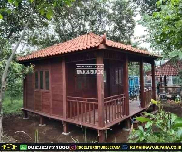DeskribsiRumah Saung Kayu Jati Kecil Minimalis
